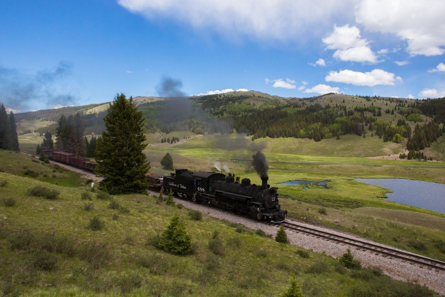 A morning drive brings us to Antonito, where we meet the Cumbres & Toltec RR, for our all-day narrow-gauge excursion from Antonito to Chama. We break for lunch at the Osier Station.