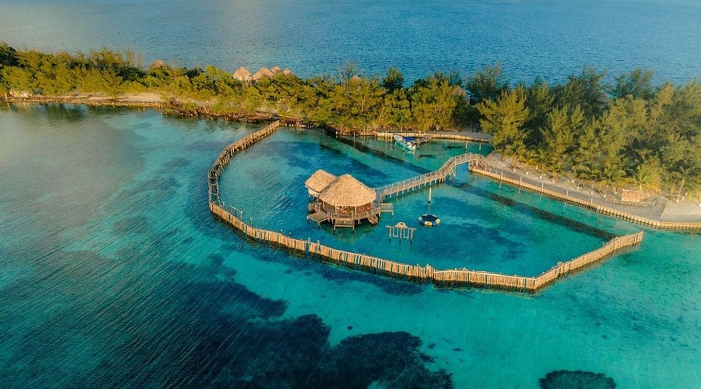 15 minute scenic flight to Dangria airport followed by a 25 minute boat ride to Thatch Caye (included)