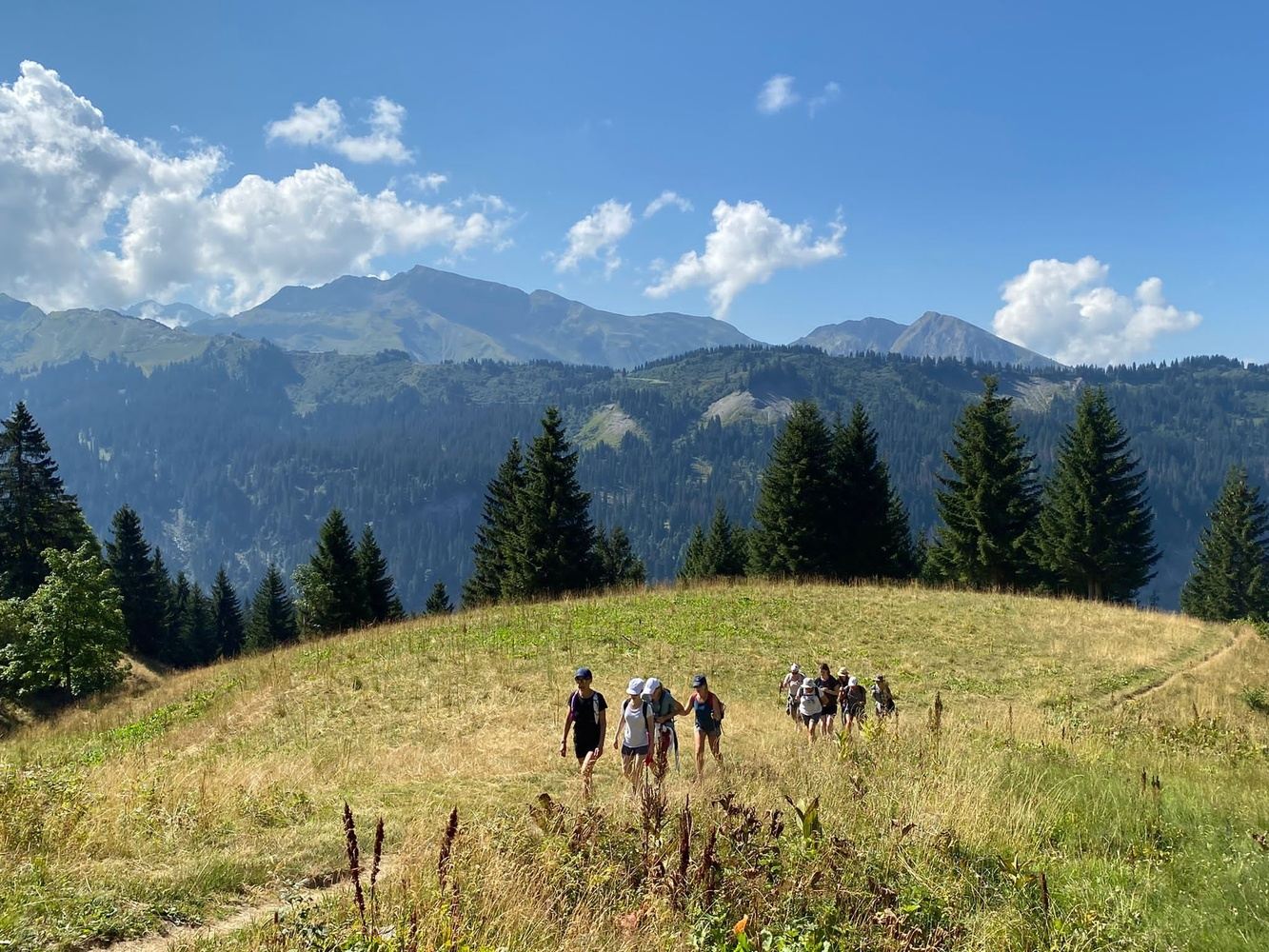 Ce matin c'est yoga pour réveiller le corps, petit dej, et c'est parti pour une magnifique randonnée. On part pour 2,5 heures de marche (6km, 300 m D+), un coin magnifique avec vue sur le Mont Blanc par temps clair !
