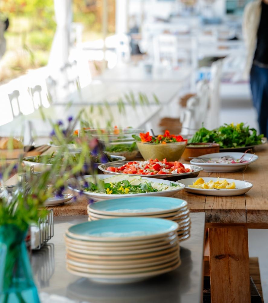 Late afternoon we’ll have our third cooking class in the beautiful outdoor kitchen where we will make homemade phyllo, fresh pitas and a traditional lamb dish. The day culminates in a communal dinner under the stars a fitting celebration for the deep ties between Greek culture, its land, and its gastronomy.