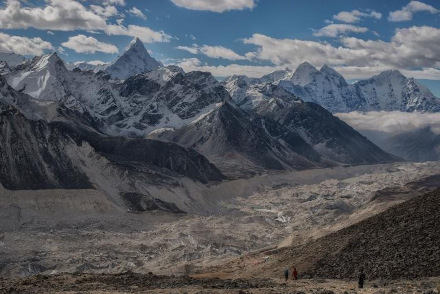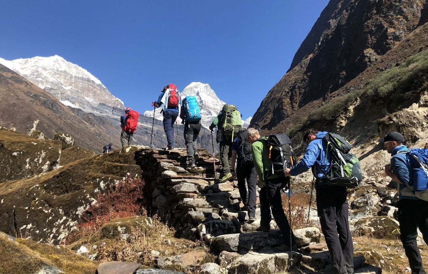 Prepare for three challenging days ahead as you ascend to the rock and glaciated camp near Mera La saddle at approx. 5400 m/17712 ft. Wear plastic mountaineering boots for warmth, protection, and stability on varied terrain. Another camp awaits halfway up the long North Slope of the mountain at about 5700 m (18696 ft) near a rock knob.