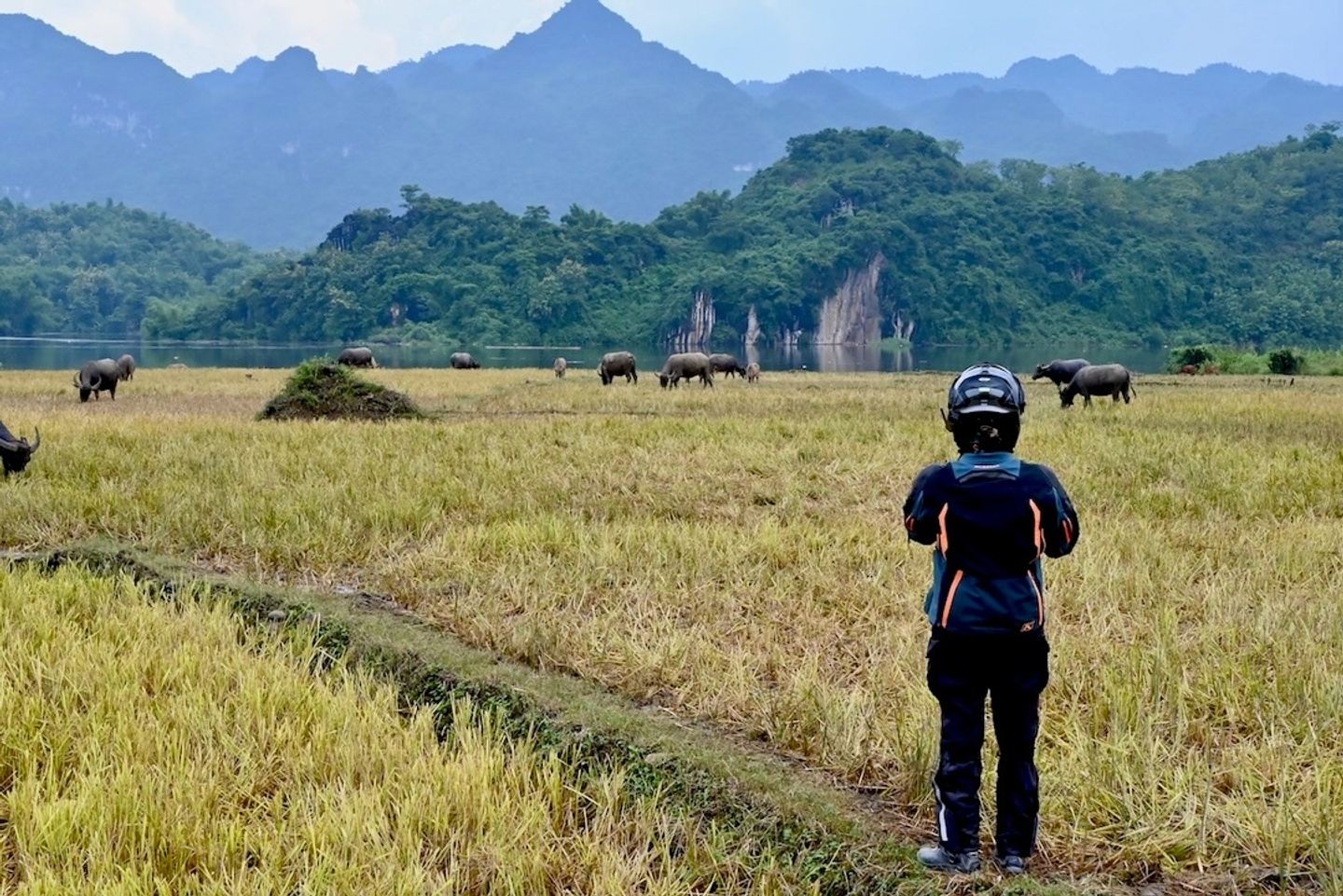 he day begins with a peaceful ferry ride across a mountain lake. We continue on mountain roads that alternate between well-maintained and rough patches, offering stunning views from the ridge. After lunch, you'll travel along single-track trails and paved mountain roads through scenic valleys, villages, and ridges, encountering occasional dirt and gravel sections. The final 30 kilometers lead you along a winding two-lane highway to the village of Mai Chau, where we'll spend the night at a tranquil ecolodge nestled in the forest, complete with a delightful restaurant and a pool.