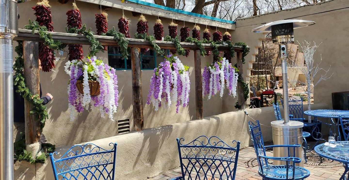 After breakfast today, we head to the Canyon Road Arts District for some great exploring. There are blocks of galleries full of fascinating art and everyone is free to wander. There are Thai, Greek, Mexican, and bistro options for lunch. Mid afternoon, we will meet up at the Ahmyo Wine Garden's patio for wine or tea.