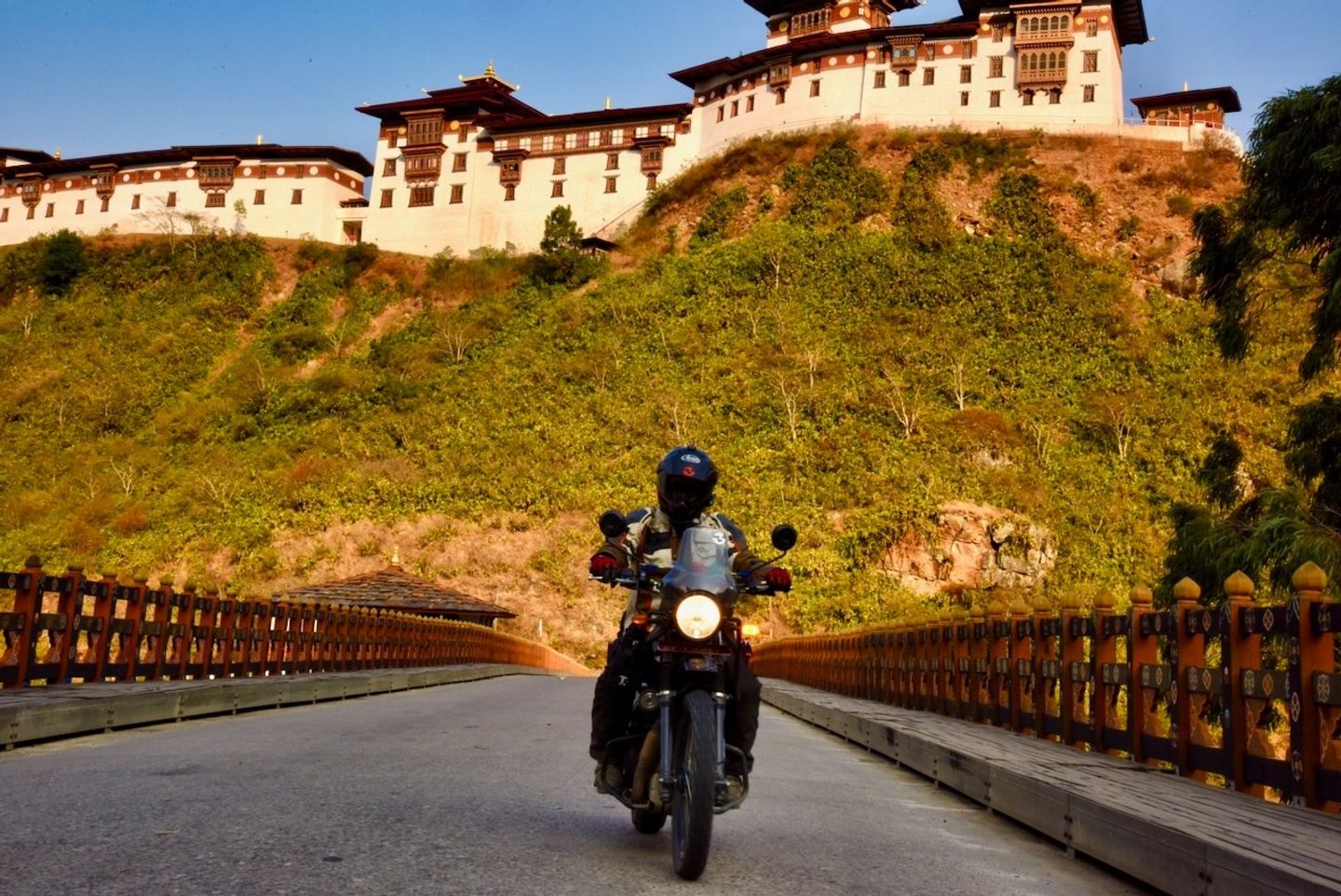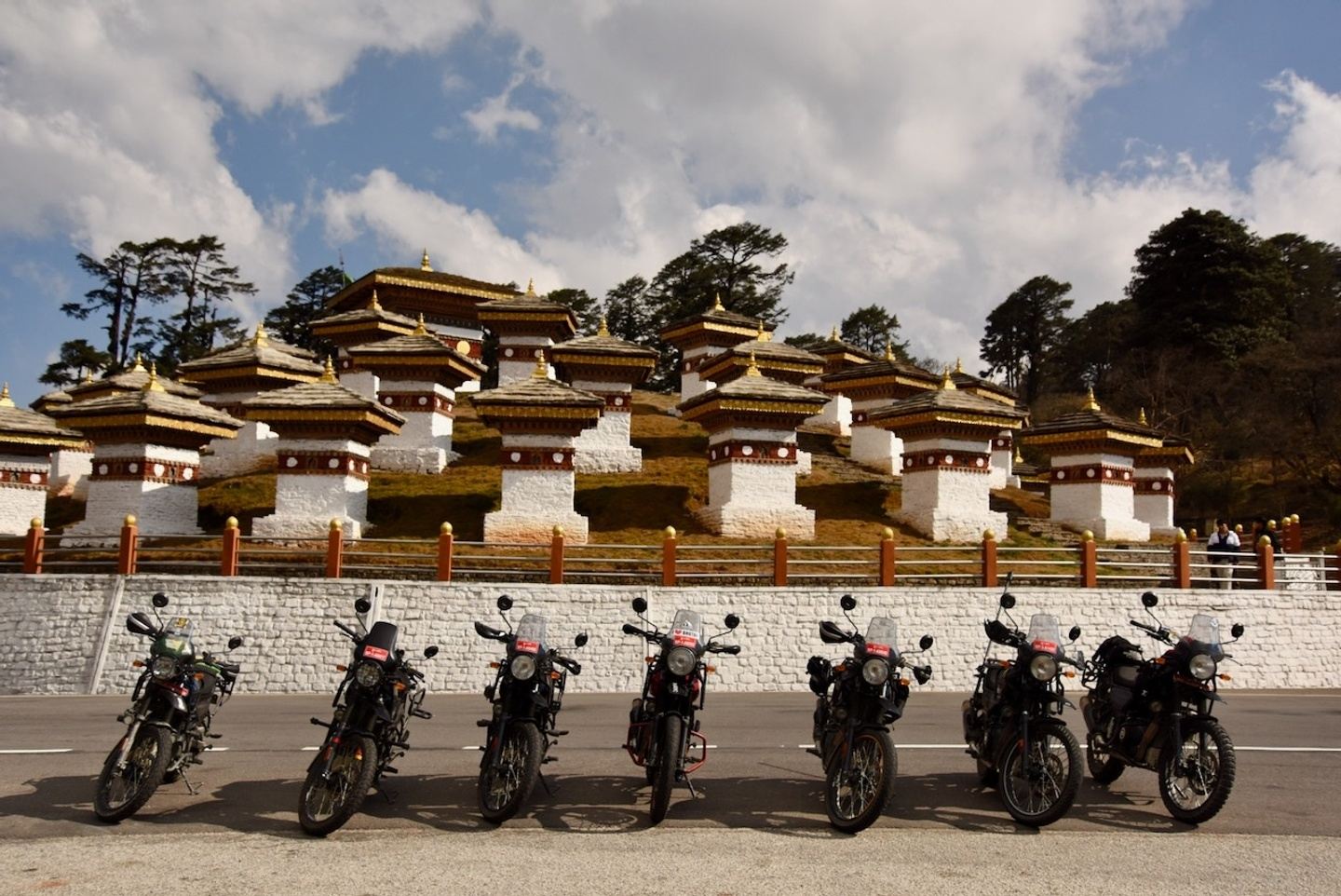 The whole experience kicks off with your arrival at Paro International Airport. With a runway extending along the valley floor and mountain ranges at either end, it offers an apt introduction to the rugged topography of the country. Rather than settle in Paro at the beginning and end of the tour, we make our way via a quick bus ride up to the capital, Thimpu. Situated at an elevation of 2,300 meters and with a population of less than 100k, Thimpu has the vibe of a ski town. On the bikes, it’s a short ride to one of the most impressive sights Thimpu has to offer, the Buddha Dordenma, a 51-meter tall, gilded statue of the Buddha