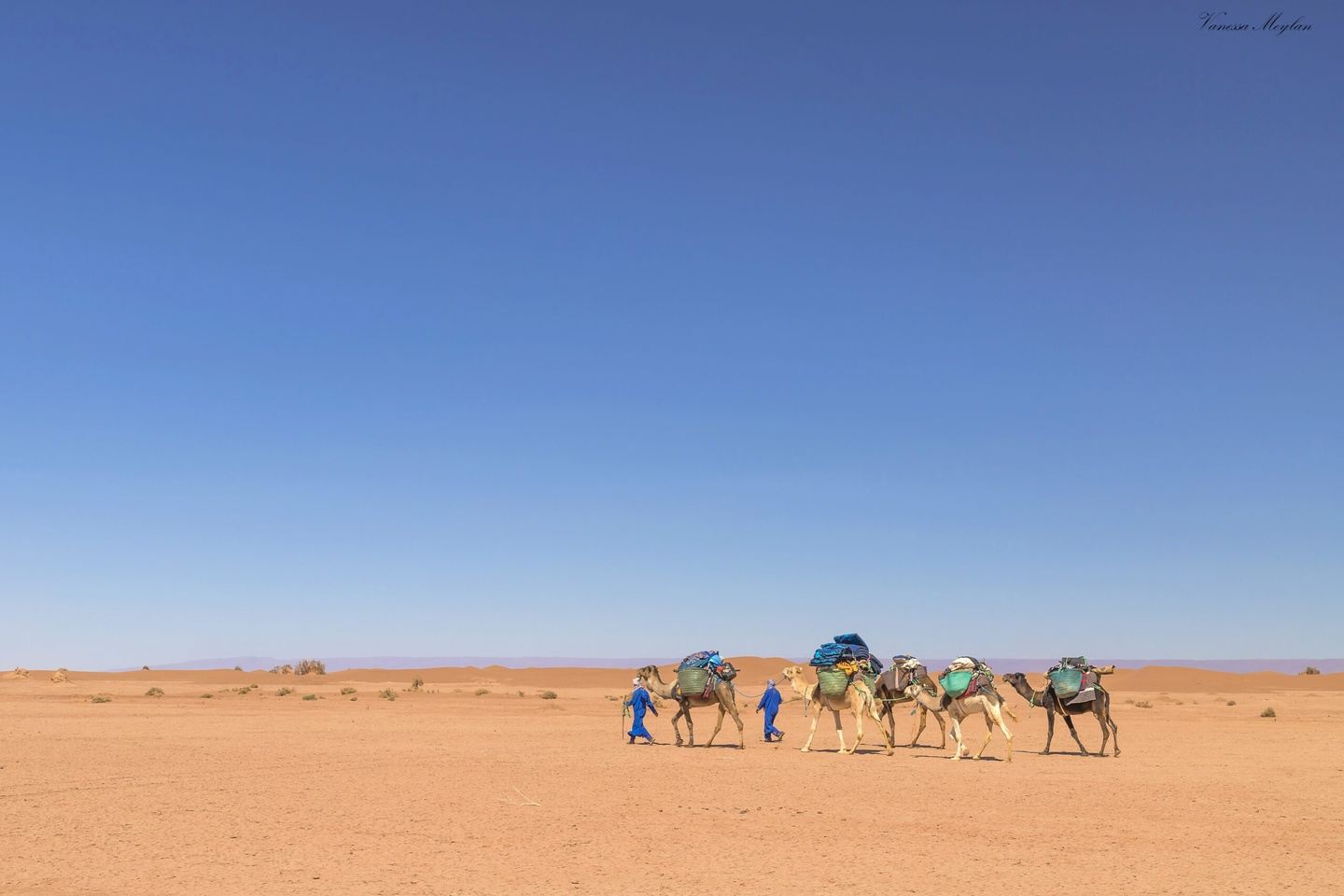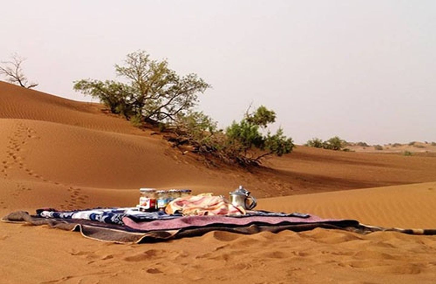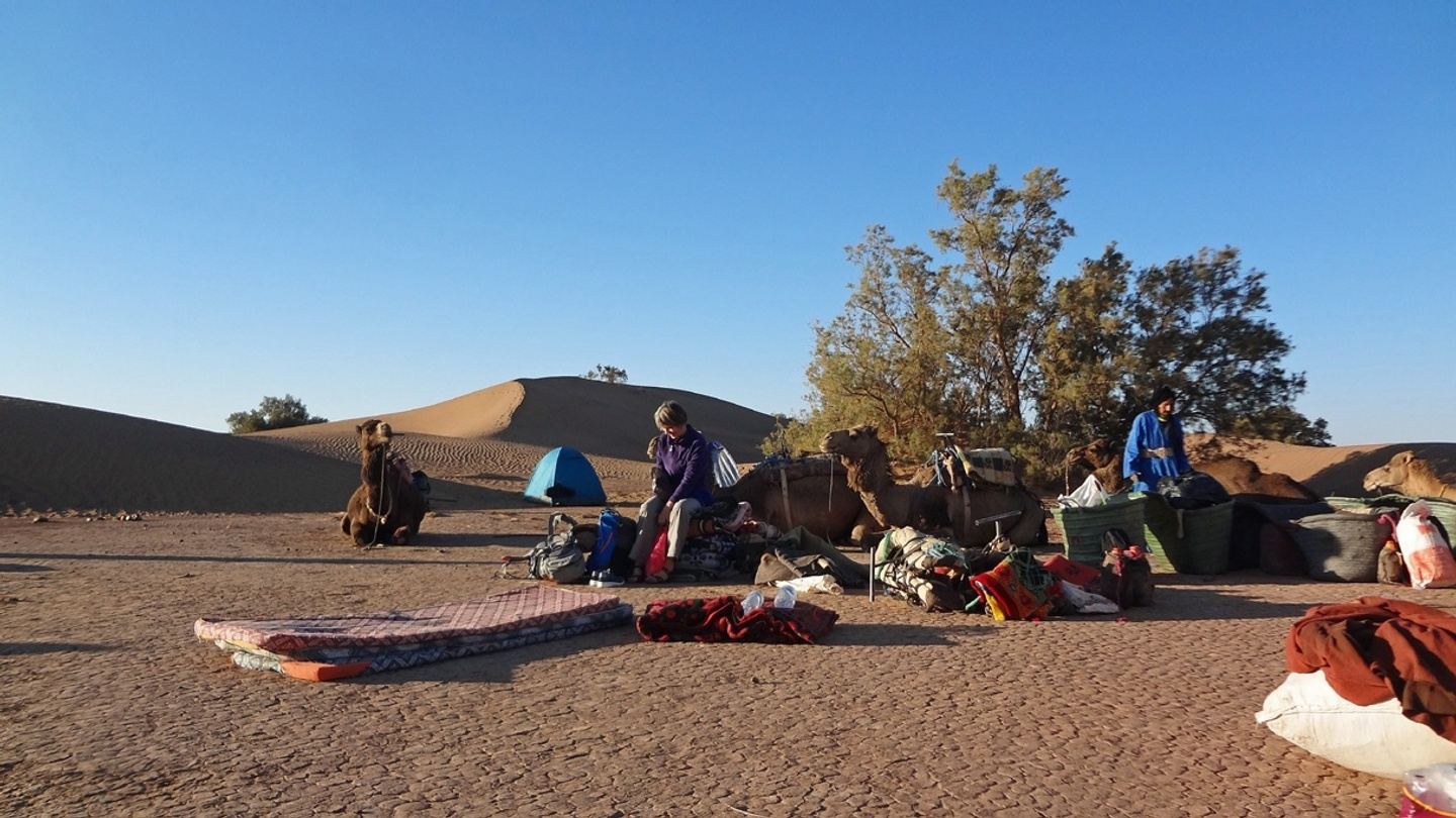 Après le petit déjeuner, la caravane partira vers ‘Talhet Hmeda’, dans de majestueux paysages désertiques via les plateaux rocheux. Tout autour, la vue est magnifique. Le déjeuner sera pris à l’ombre d’un Tamarisk. Au coucher du soleil, une balade dans les belles dunes sera possible pour ceux qui le souhaitent. La nuit, vous dormirez dans le calme profond du Sahara, sous la tente nomade, ou les étoiles.